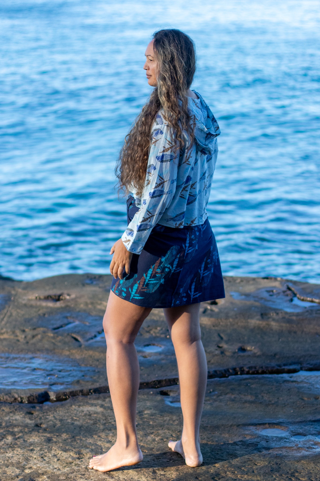 Moa + Hulumoa | Cropped Hoodie - blue